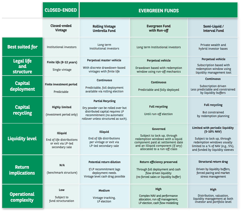Evergreen private capital structures vs closed ended structures: A comparison